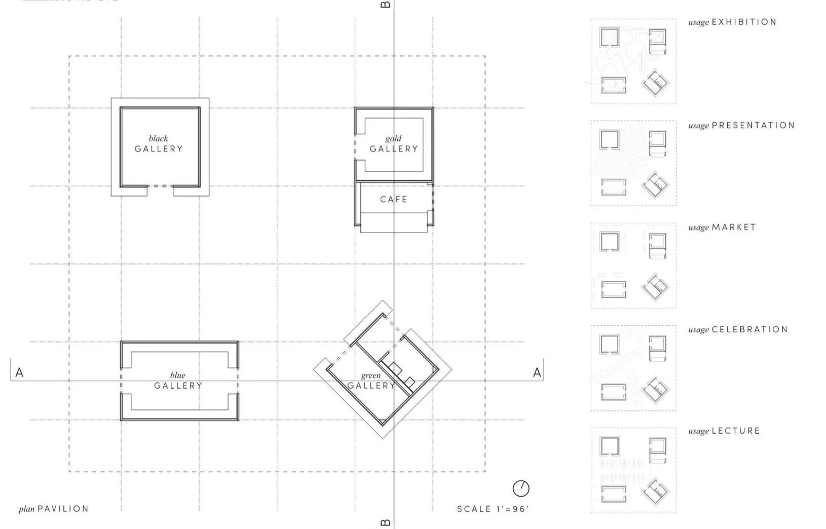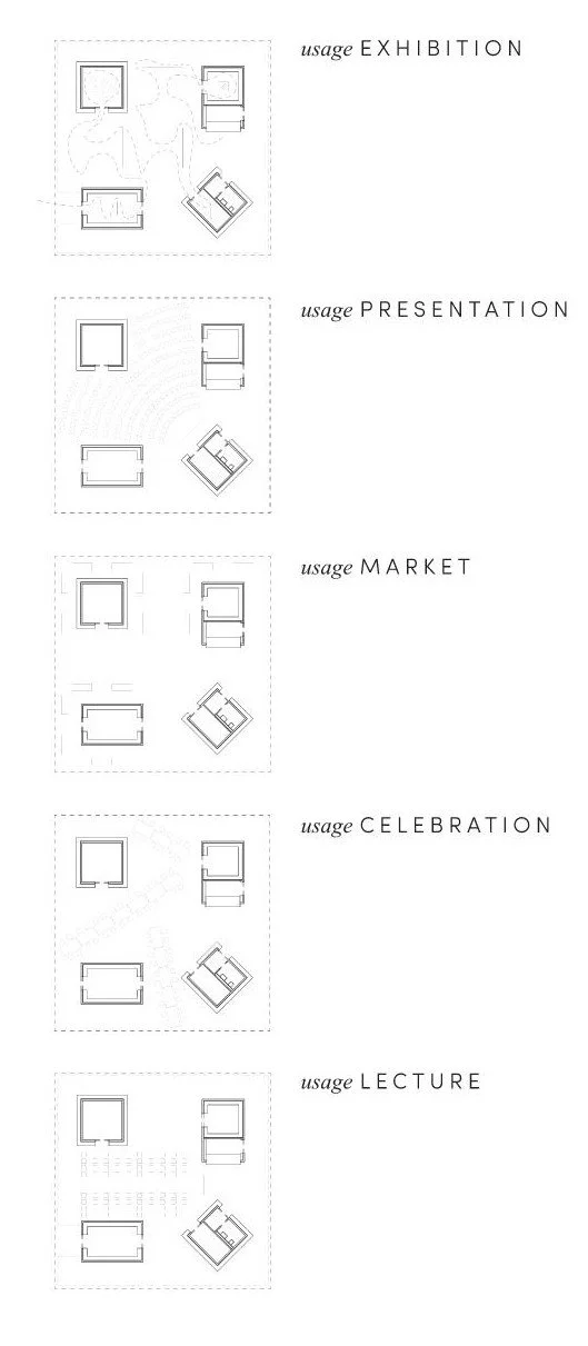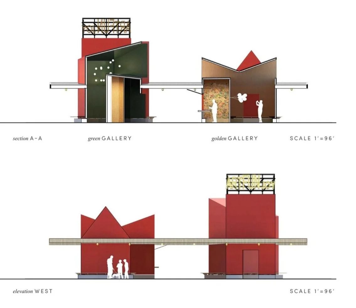 Drawing from the scale and rhythm of the surrounding neighborhood, the pavilion is composed of four distinct gallery volumes unified by a broad, sheltering roof. Each gallery offers a different spatial experience—from open and sunlit to enclosed and immersive—supporting markets, performances, exhibitions, and informal gatherings.